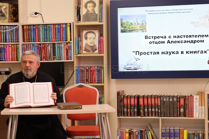 В центральной модельной библиотеке состоялась духовно-просветительская встреча с настоятелем храма Николая Чудотворца отцом Александром. Тема мероприятия - «Простая наука в книгах» - была посвящена роли литературы в жизни человека.